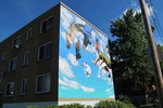 Cette murale de Monk.e a été réalisée aux Habitations La Pépinière en partenariat avec l'Office municipal d'habitation de Montréal et Projet Harmonie. Un groupe de jeunes de 18-25 ans ayant récemment vécu une situation difficile a participé à la réalisation de l'œuvre ...